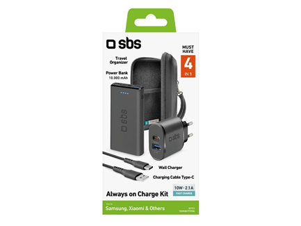 SBS rejsesæt med opbevaring, powerbank, oplader og USB - USB-C kabel